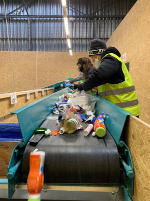 Nach dem Einsammeln, wird sortiert. Die Recycling Artikel, werden alle in separaten Boxen sortiert, damit diese für die weitere Verarbeitung abtransportiert werden können.